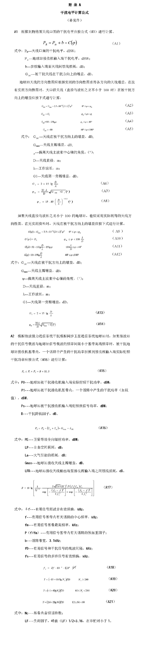 B1.3.3 天線口面處干擾信號(hào)電平PR的折算應(yīng)按公式(B1)進(jìn)行計(jì)算。